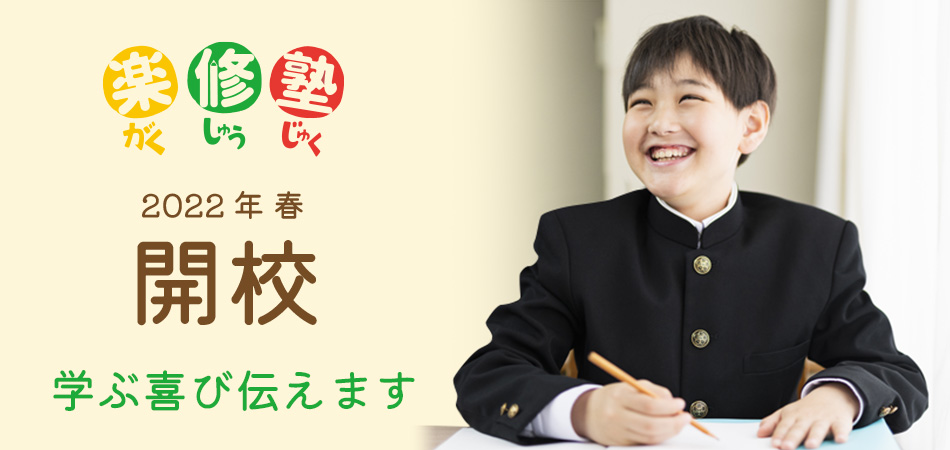 私たちはいわゆる進学塾ではございません。勉強に苦手意識がある、勉強が好きではないけどこのままでは不安、といった生徒さんに学ぶことの楽しさを味わってもらうことをモットーとした文字通りの「楽修塾」です。